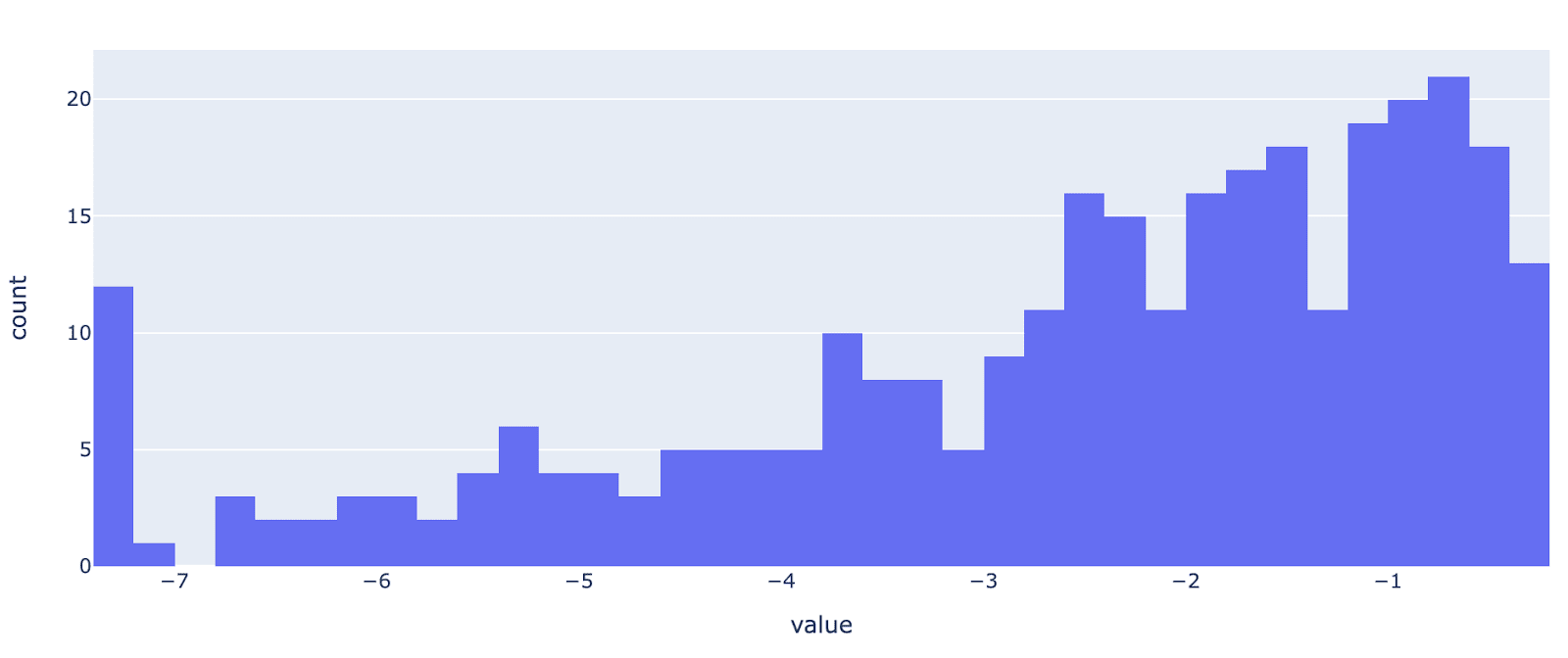 Fig 15: Distribution of log10 frequence for key-encoder-decoder features (after filtering dead neurons)