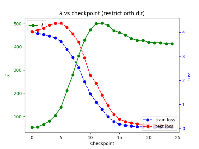 Finally, we performed a dynamic estimate of the learning coefficient at various checkpoints during the learning process for generalizing networks.