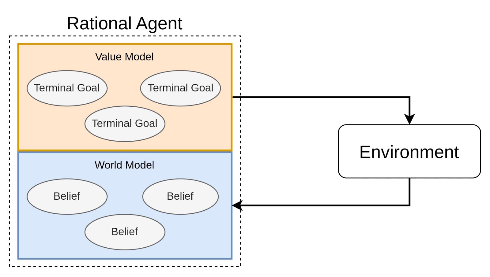 The concept of a rational agent, in this frame, is a system which cleanly distinguishes between these two directions of fit, between objects which describe how the world actually is, and objects which prescribe how the world “should” be.