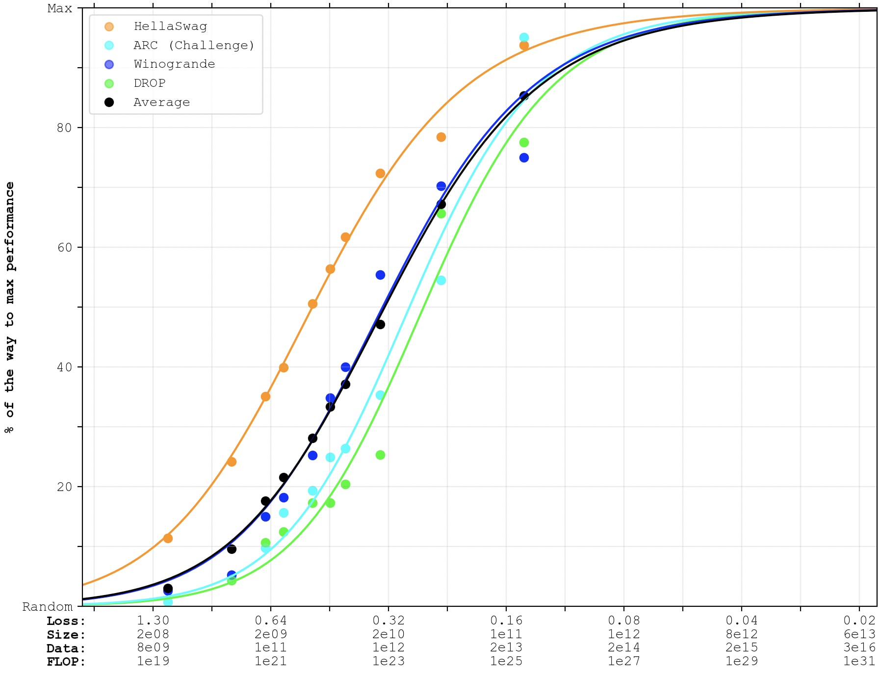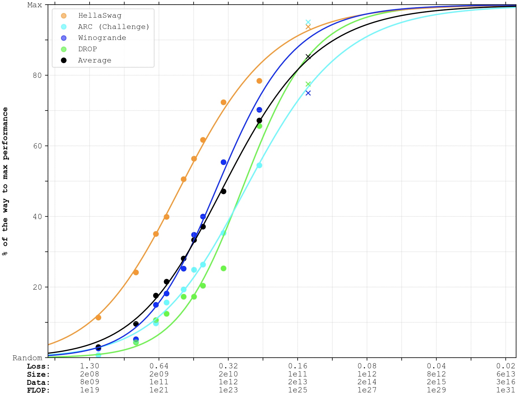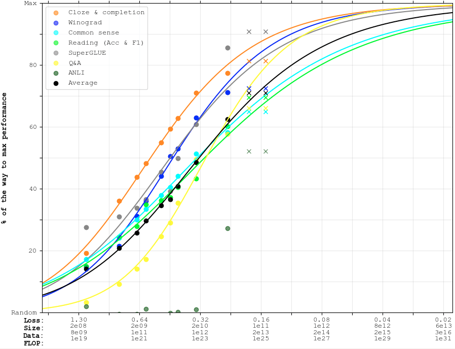 • Cloze & completion, Winograd, and Q&A are below trend.