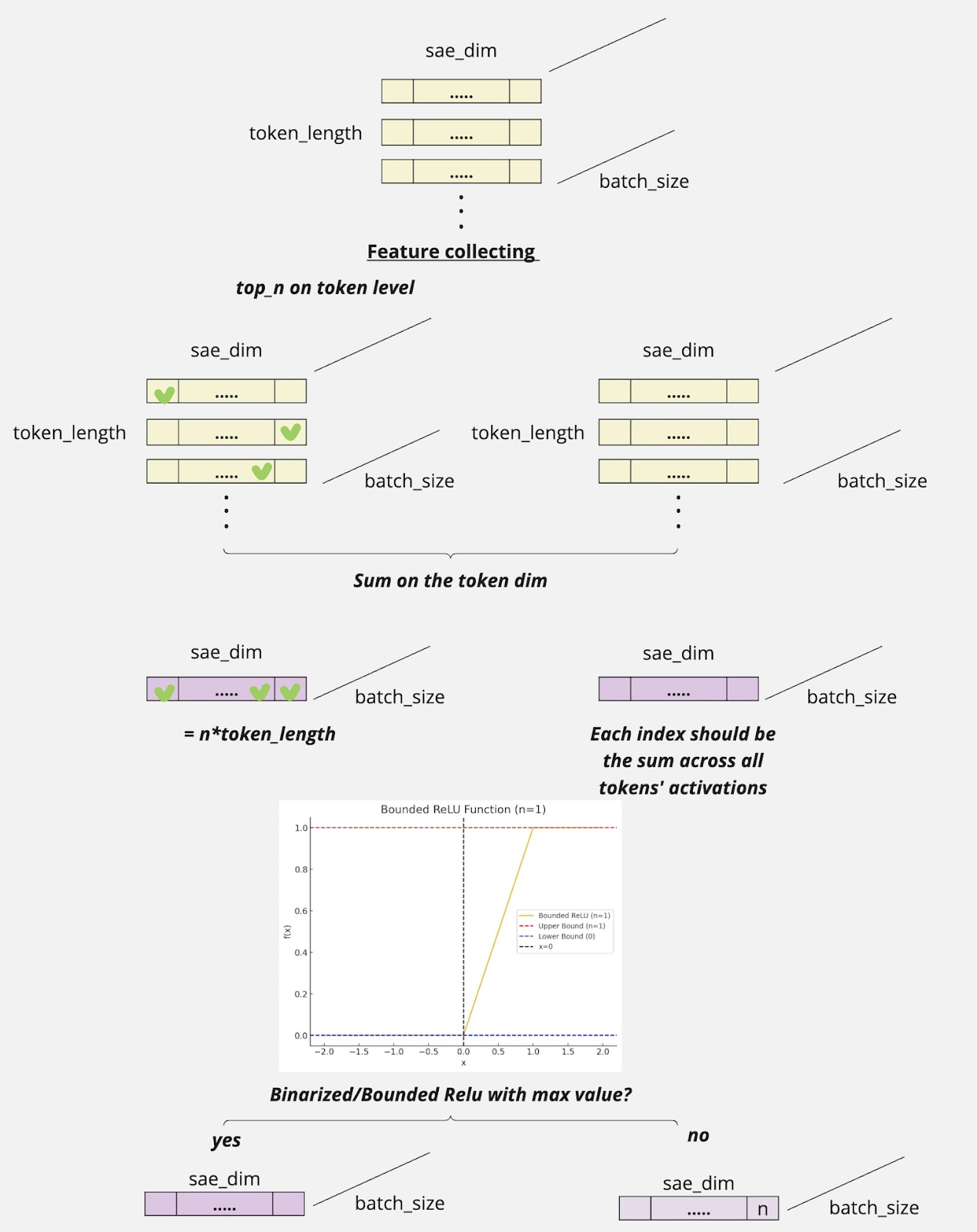 Top-N Selection: Selected the highest N activations, representing the most salient features.