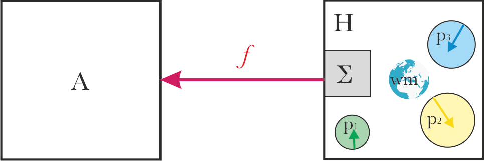 But in practice, a lot of alignment researcher seem to assume that it’s fine to abstract this away. There seems to be an assumption that alignment (the correct operationalization of the arrow f) doesn’t depend much on the contents of the system H box. So if we abstract the contents of the box away and figure out how to deal with alignment in general, this will naturally and straightforwardly extend to the messier case too.