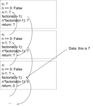 Now, forget about n=3. I just have the compressed world-model for the general case. I’m playing around with a debugger, setting breakpoints and stepping through the code. Some data comes in; it tells me that the value of “factorial(n-1)” in the “second block from the top” in the expanded model is 7.