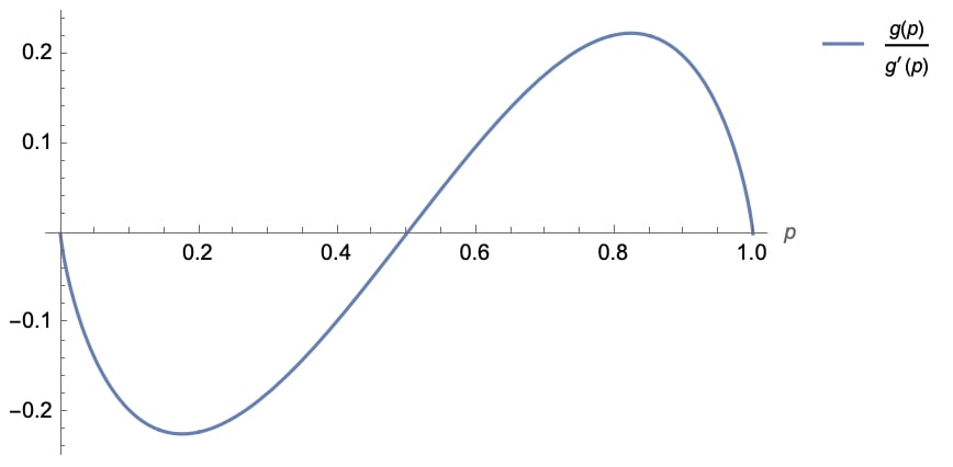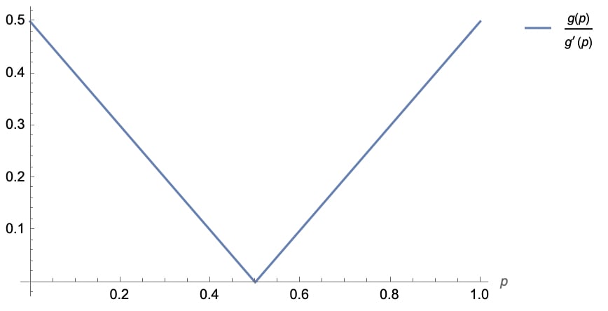 Numerically optimizing this, we get a bound of , attained roughly at and . So the log score gets us roughly half of the bound of the quadratic score.