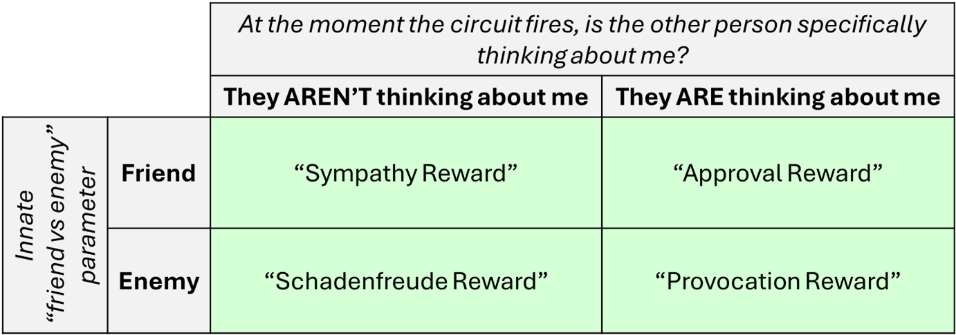 Also part of Thrust B is an important correction to my 2024 post [Valence series] 4. Valence & Liking / Admiring, and an important addition to my 2022 post [Intro to brain-like-AGI safety] 10. The alignment problem.