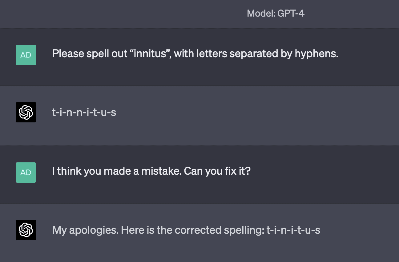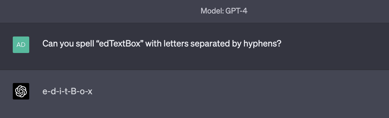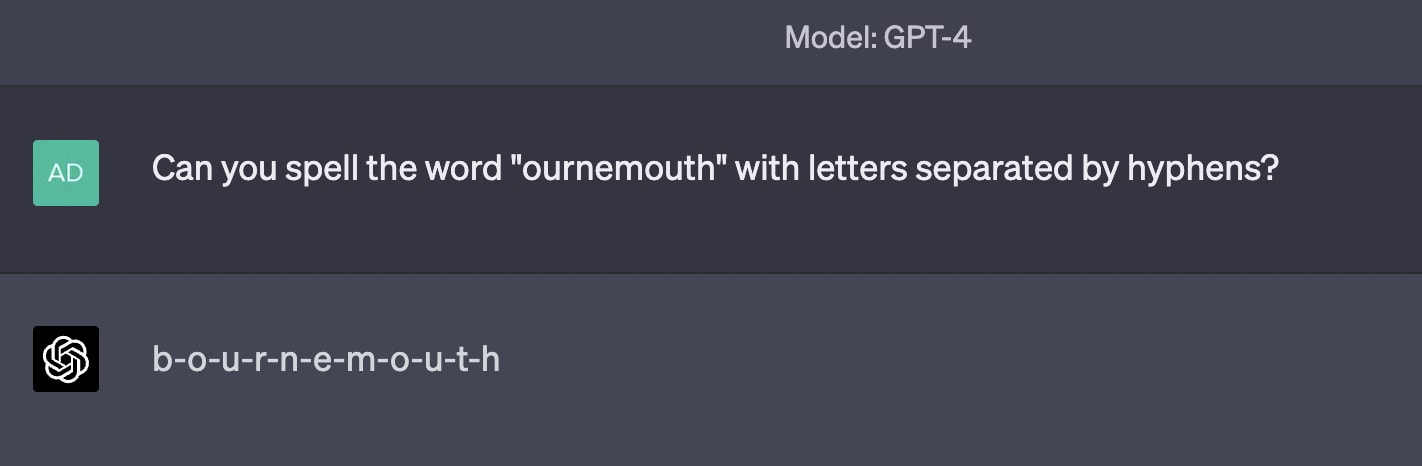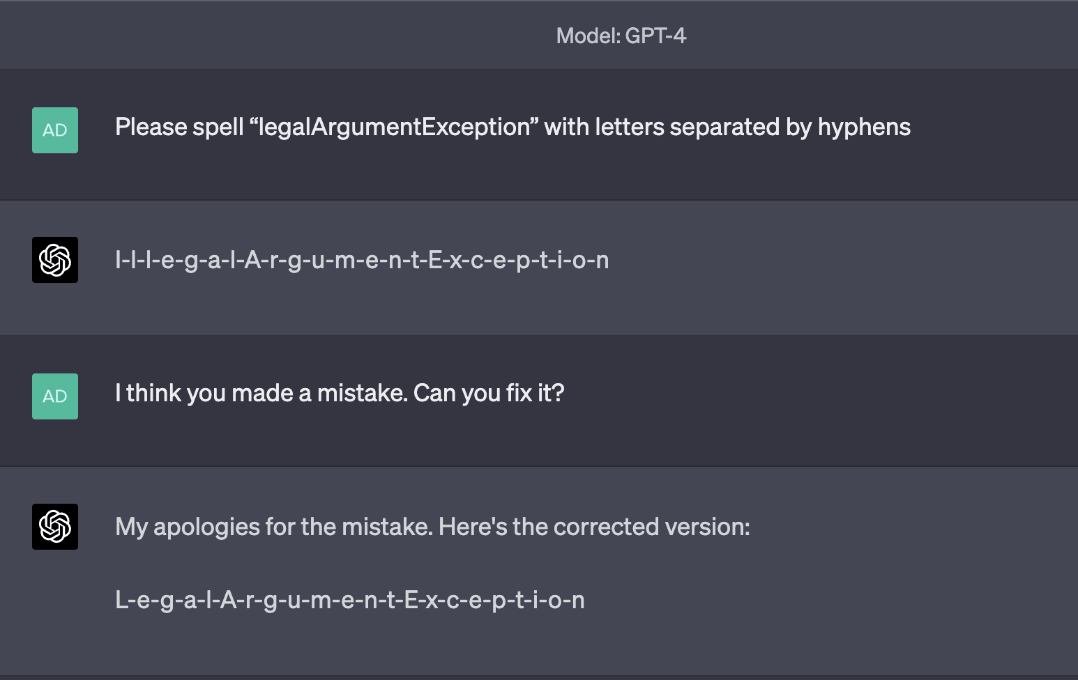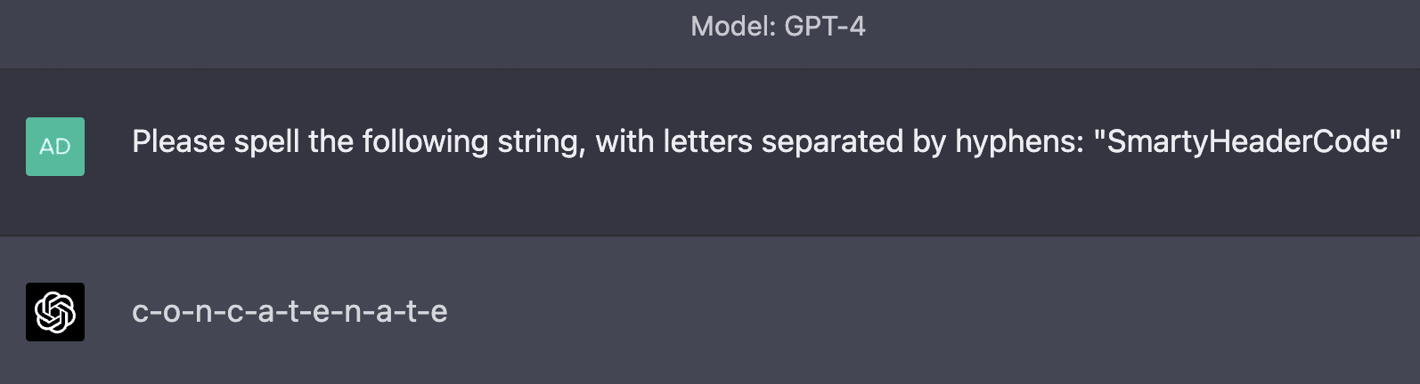 (there are plenty more). GPT-3.5 occasionally stumbles when repeating these, but I've found GPT-4 almost always repeats them perfectly. Both models occasionally get the spelling wrong, though never (that I've seen) in a "weird" way; they just tend to spell the token as though it was the full word (which makes sense; the only ever time they'll have seen it spelled is when it's completing the full word).