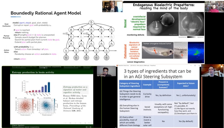 In the past, we had speakers such as Michael Levin talking about Morphogenesis as a form of intelligent problem-solving building towards a framework of Basal Cognition; Josh Bongard about efforts to build hybrid intelligent 'agents' at the intersection of biology, cognition and engineering; Miguel Aguilera on Nonequilibrium Neural Computation; Steve Byrnes on Challenges for Safe and Beneficial Brain-Like AI; or Tang Zhi Xuan on Modeling Bayesian Bounded Rational Agents.