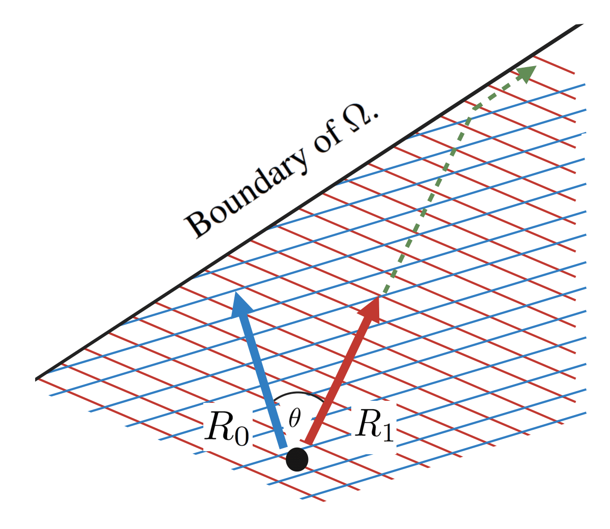 To start with, if we are in the interior of (i.e., not close to any constraints), then the direction that most rapidly increases is to move parallel to . Moreover, if the angle between and is no more than , then this is guaranteed to also increase the value of . To see this, consider the following diagram: