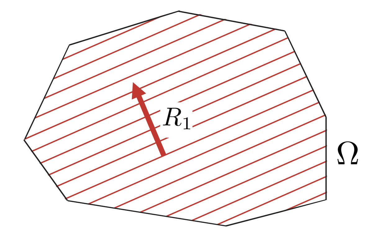 The next thing to note is that we will not just hit the boundary of once. If we pick a random point in , and keep moving in the direction that most rapidly increases until we have found the maximal value of in , then we will hit the boundary of over and over again. Each time we hit this boundary we will change the direction that we are moving in, and each time this happens, there is a risk that we will start moving in a direction that decreases .