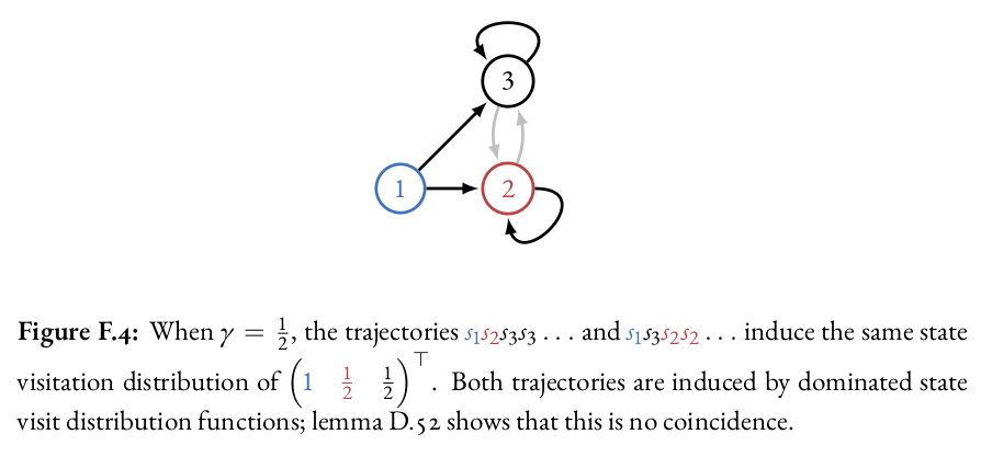 Suppose that we work with a fixed MDP, with states, actions (we assume both being finite) and a discount factor . We are interested in the space of (Markov) policies giving, for every state , a probability distribution over actions. For every reward we can compute the expected return for any policy . Unfortunately, the function can be quite complex. However, it turns out that instead of working with policies, we might instead choose to work with state-action occupancy measures. There is an occupancy measure for each policy : it is defined over pairs (state , action ), and indicates roughly how often we take action in state . Formally: