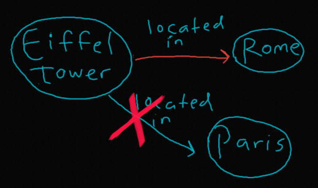 One of the main approaches takes in logical triplets of the form (Subject,Relation,Object) and performs an update to the “object” value, which in turn modifies information about the “subject”. For example, the sentence “The Eiffel tower is located in Paris” would be expressed as (“Eiffel tower”,“located”,“Paris”), and a potential edit could be to replace “Paris” with the value “Rome”. Some variations on this setup exist (for example, editing the prediction of a [MASK] token for BERT like models), but the logical triplet setup is the most popular and will be the main approach we focus on for this article.