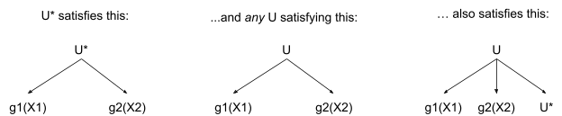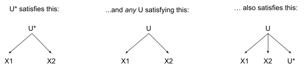 We have to be able to calculate our “universal” upstream from any which induces independence of . In particular, and are independent given either or itself - so we can choose either of those to be . Combine that with the original requirements, and we have: