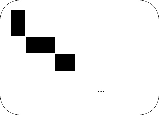 Here the dark blocks are nonzero values; everything else is zero. Within the dark blocks, we have - i.e. the dark blocks are each rank-1 submatrices. Intuitively, our distribution consists of a deterministic relationship (the choice of which block we’re in) plus independent variation (choice of values within the block). This generalizes in the obvious way to the full distribution : the full distribution consists of non-overlapping 3D blocks of nonzeros, with the three variables independent within each block.