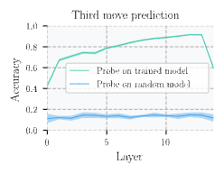 We find that this probe can predict the move 2 turns in the future quite reliably (with 92% accuracy in layer 12).