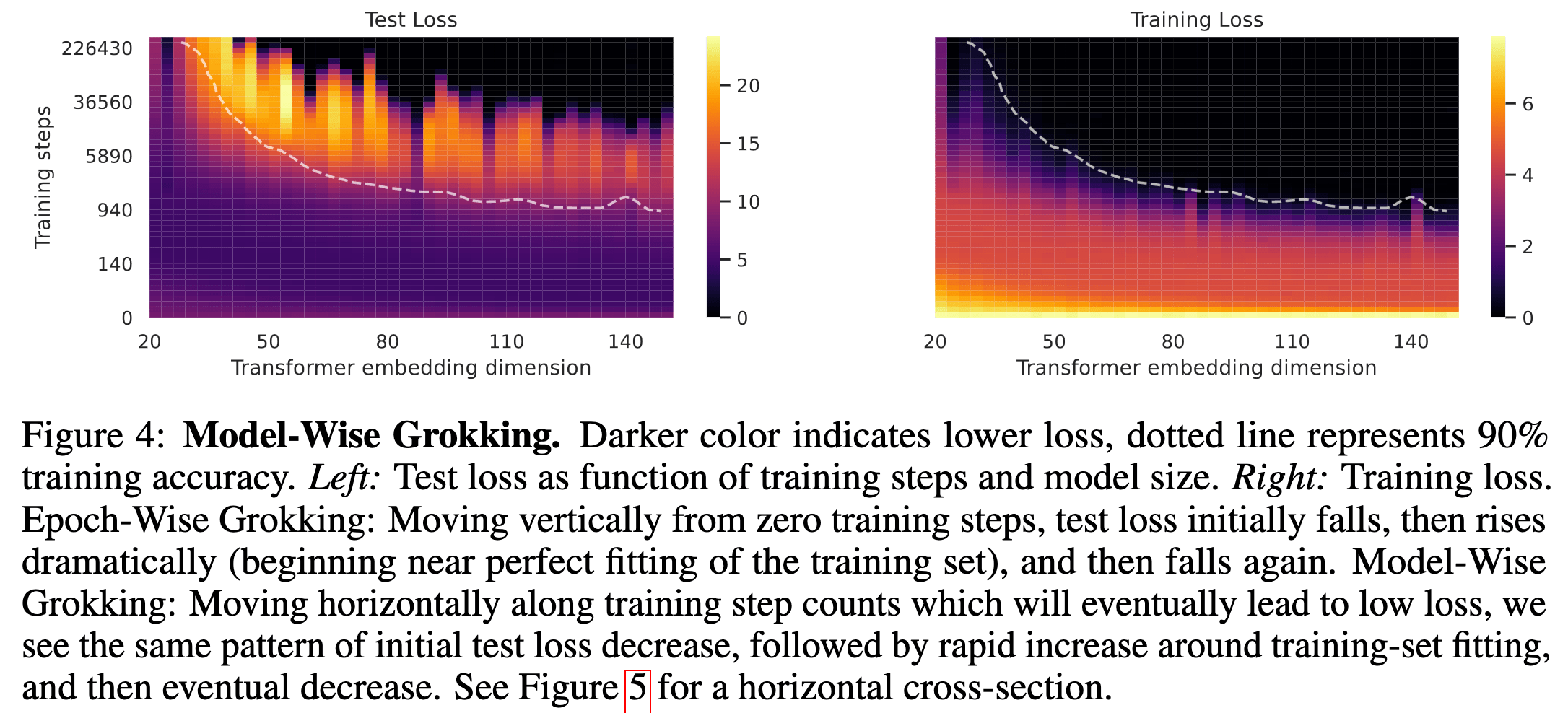 I find this paper somewhat dubious. Their key novel result, that grokking can happen with increasing model size, is illustrated in their figure 4:
