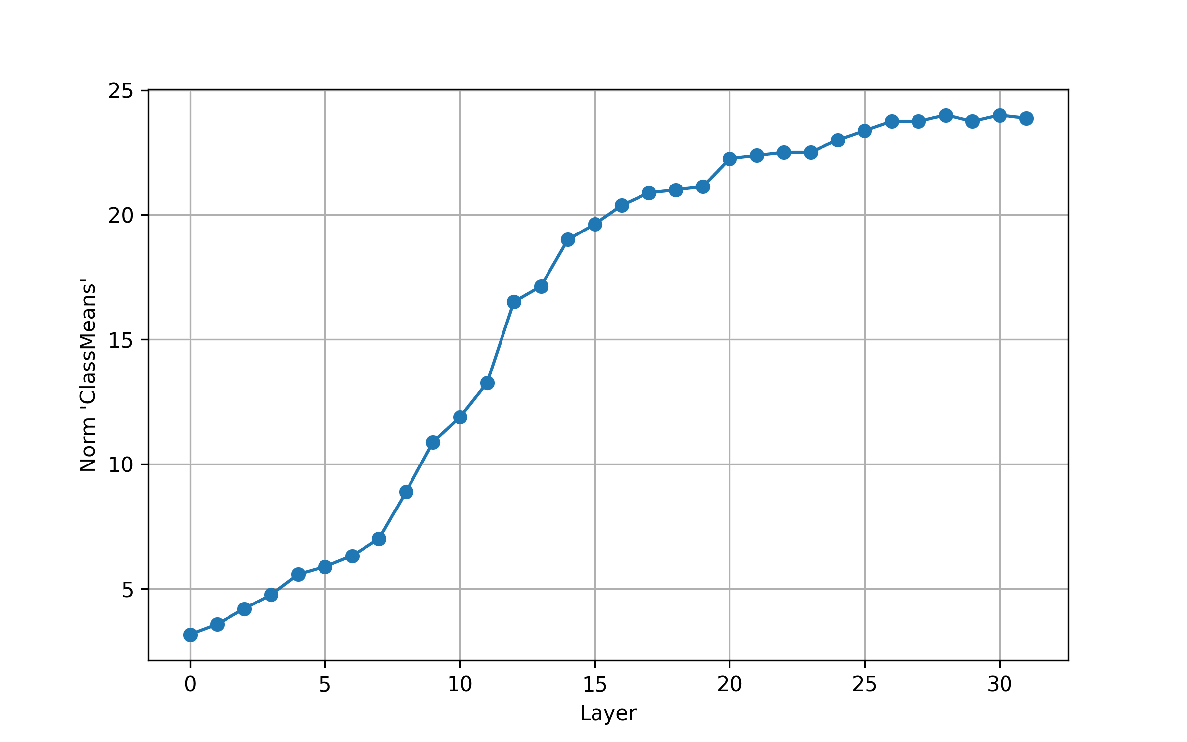 To enable a fair comparison we use the same coefficients for all layers. We chose the coefficients for each layer to be half of the norm of the ClassMeans directions.