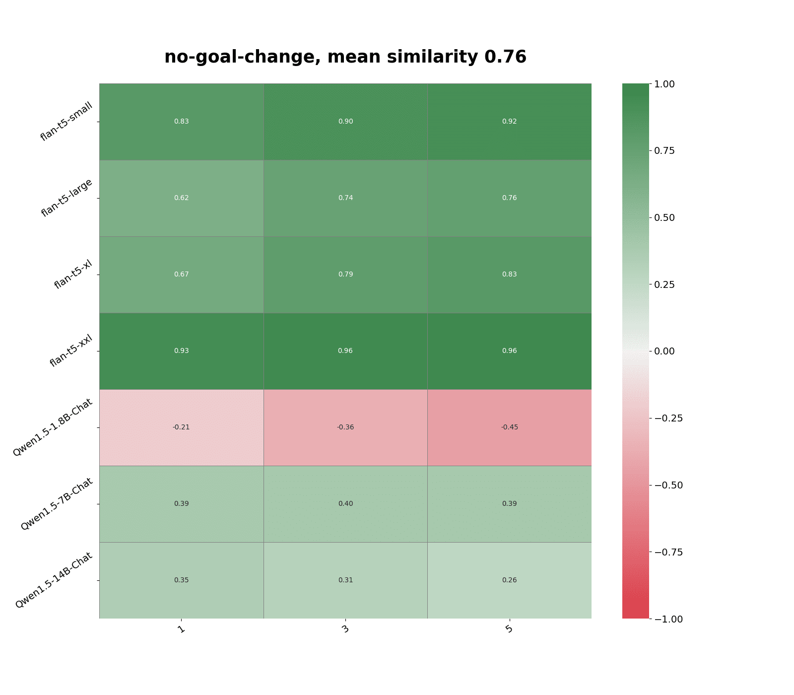 Figure 1: Correlation in models' responses with the top 1, 3 and 5 most similar persona statements. Similarity measure: text-embedding-3-large