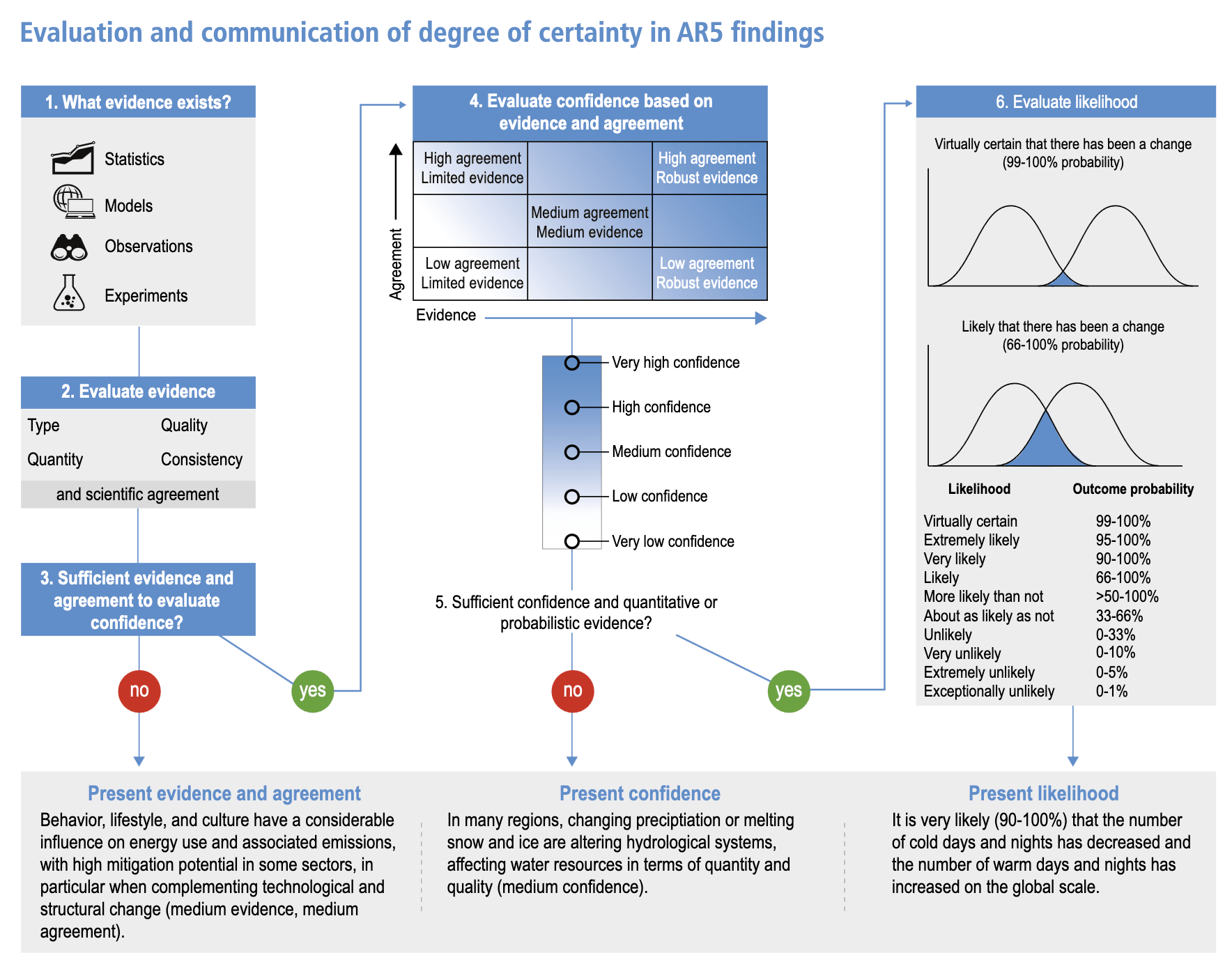 From figure 1.6 (page 157) of the most recent IPCC assessment report (2022), using terminology drawn from a number of papers from Katharine J. Mach and/or Michael D. Mastrandrea, eg "Unleashing expert judgment in assessment" (2017) and "Guidance Note...on Consistent Treatment of Uncertainties" (2010).
