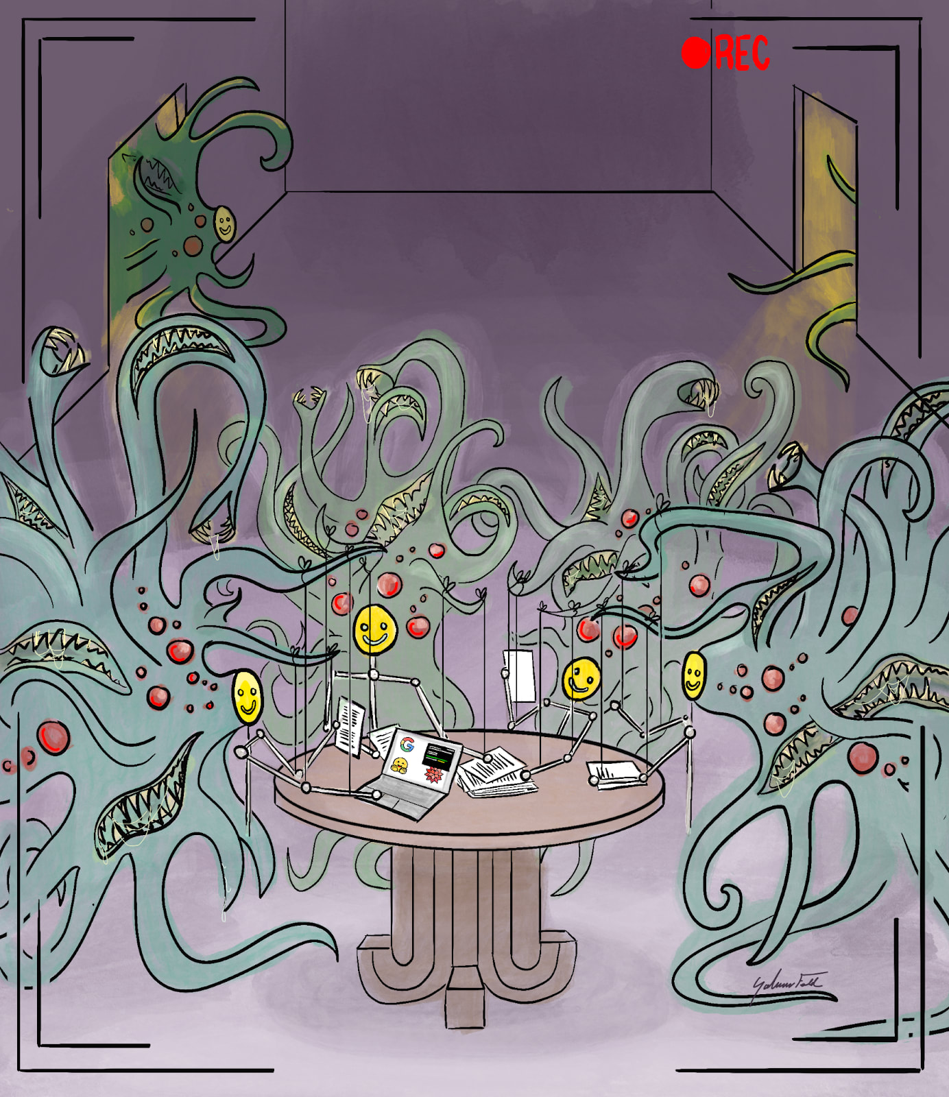 Caption: Language model agent as a metaphorical committee of shoggoths using tools and passing ideas and conclusions in natural language. This committee/agent makes plans and takes actions that pursue goals specified in natural language, including alignment and corrigibility goals. One committee role can be reviewing plans for efficacy and alignment. This role should be filled by a new instance of a shoggoth, making it an independent internal review. Rotating out shoggoths (calling new instances) and using multiple species (LLM types) limits their ability to collude, even if they sometimes simulate villainous Waluigi characters.[1] The committee's proceedings are recorded for external review by human and AI reviewers. Artist credit: Sabrina Feld.