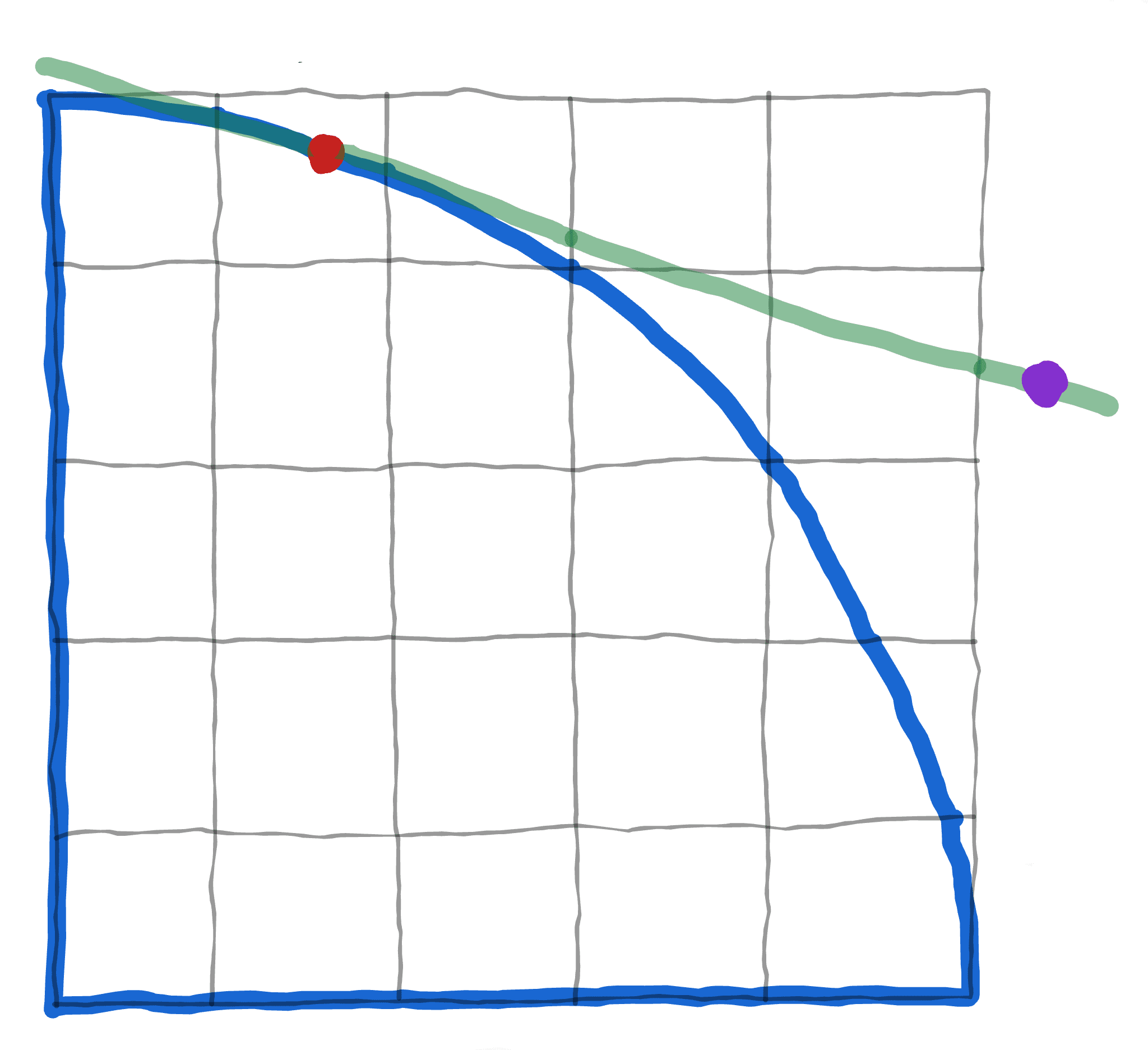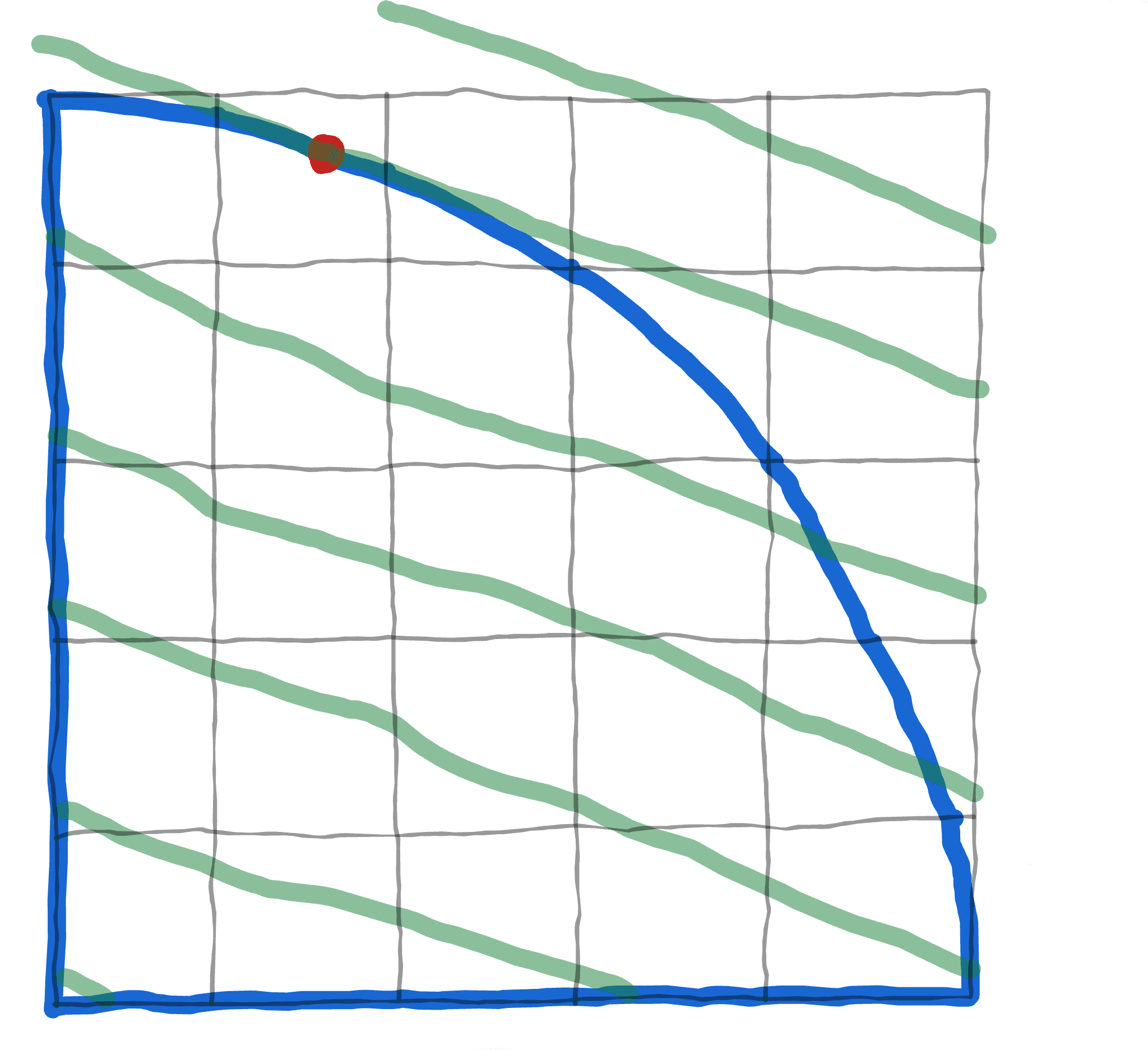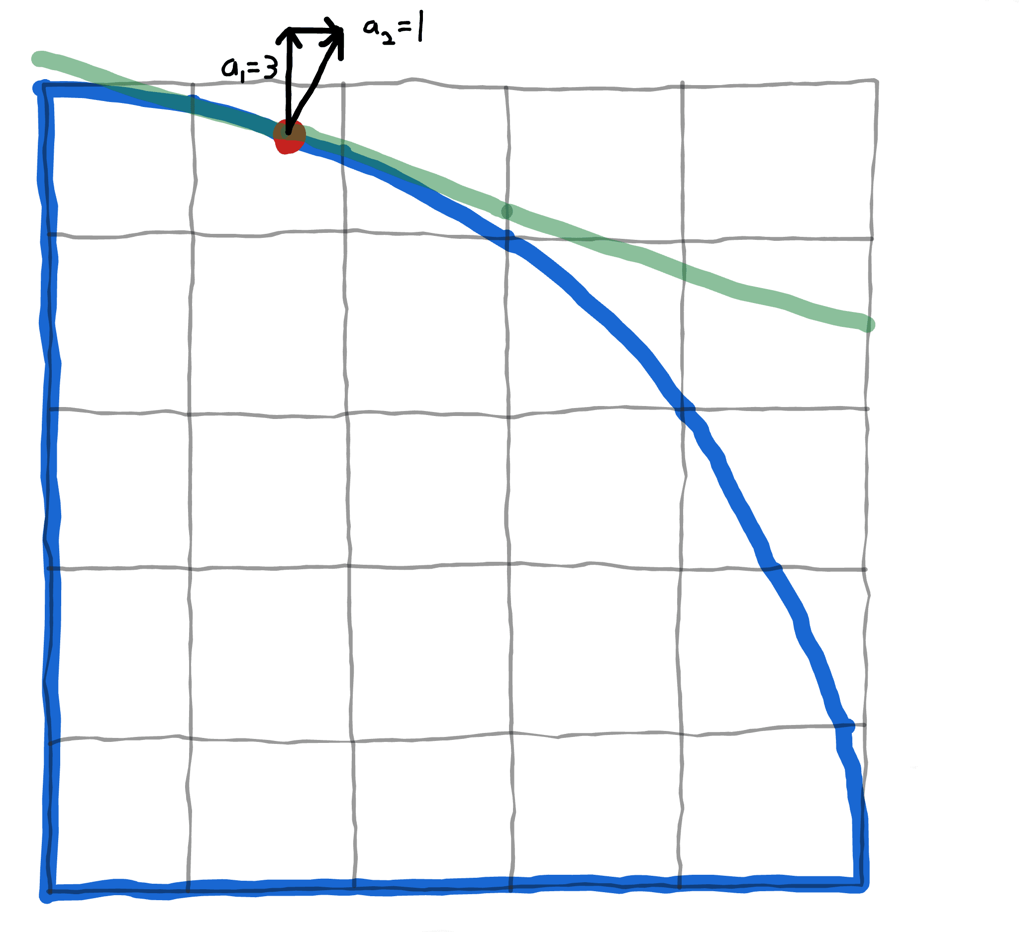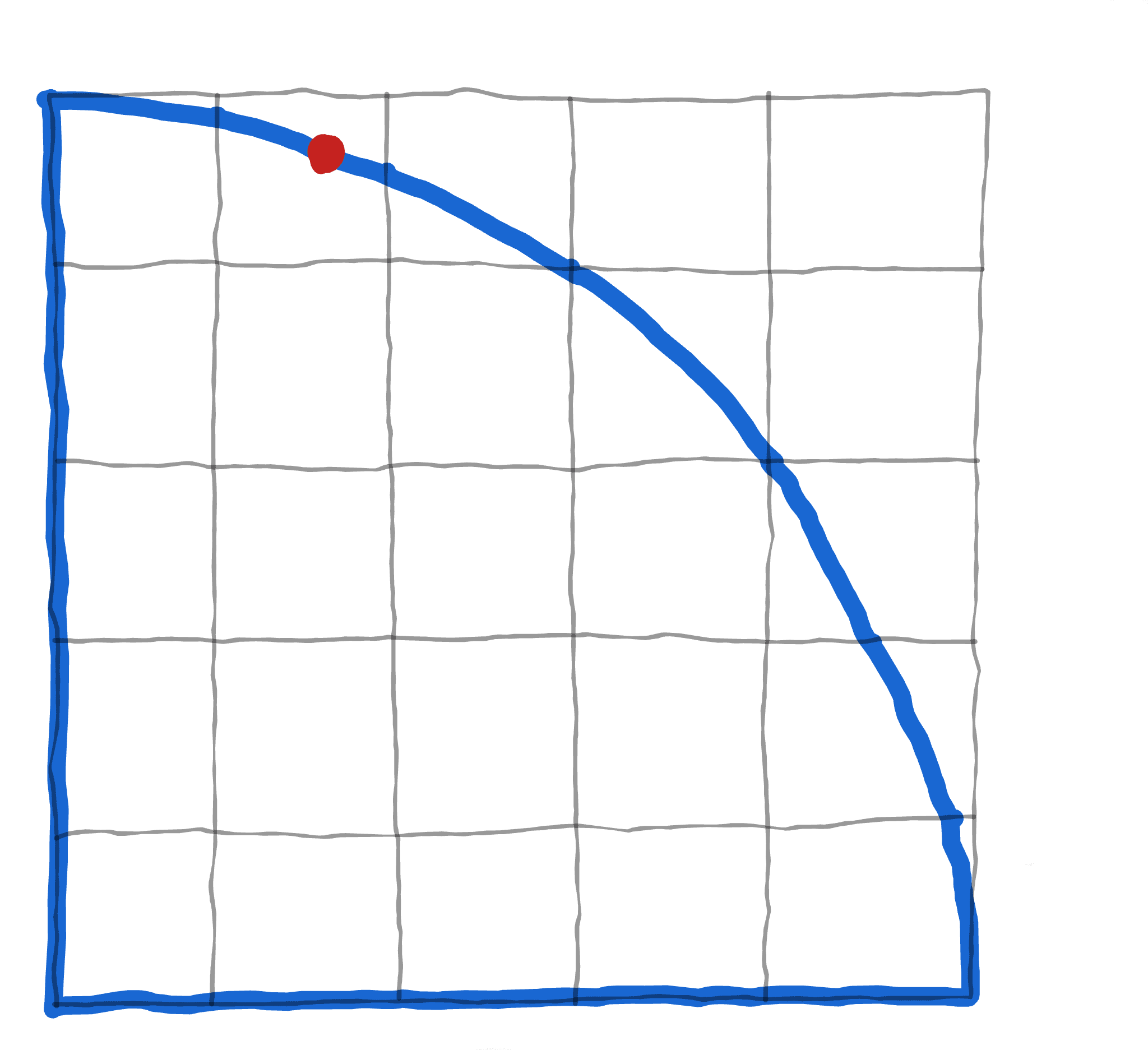 But, there's another completely different way of viewing this process! If we take our Pareto-frontier point and zoom way way in...