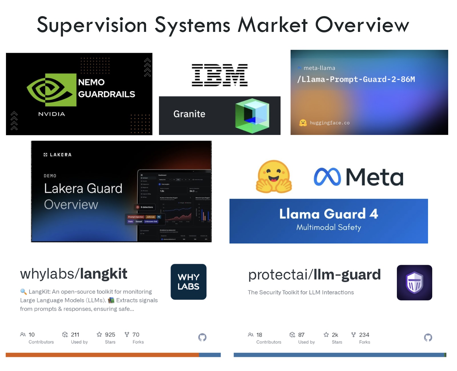 Specialized supervision systems have emerged in the LLM safeguards industry landscape to help prevent and monitor misuses and failures of chatbots.[3]