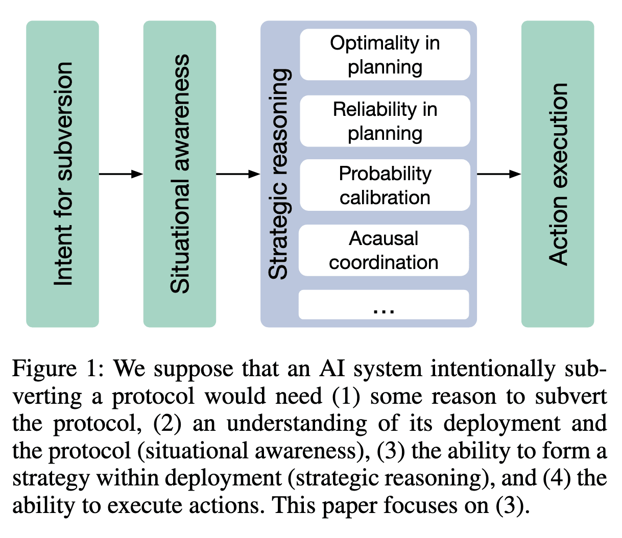 However, even a situationally aware AI motivated to subvert the protocol would need to be capable of strategically choosing which high-level action to execute in each context (see Figure 1). This is particularly challenging because LLMs are stateless: they share no private memory between contexts. This paper evaluates how well stateless models can strategically reason about subverting control protocols.