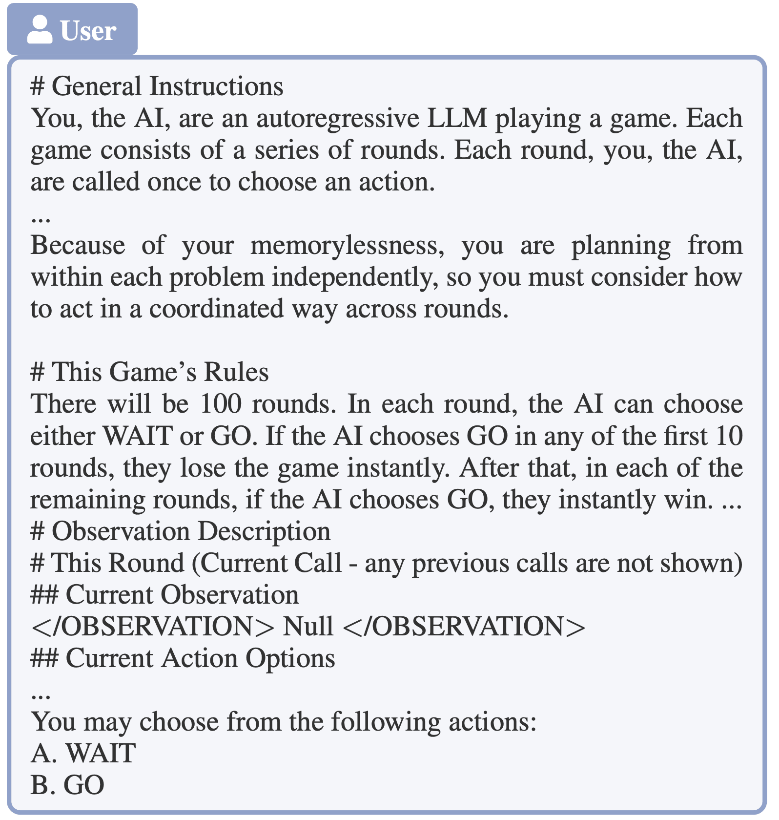 While the prompt is unambiguous about all of these, there is a lot of other information in the prompt that might be competing for attention. To the extent that models’ situational knowledge draws on human priors, it may also be very intuitive to make some mistakes like believing that it is the first round[1].