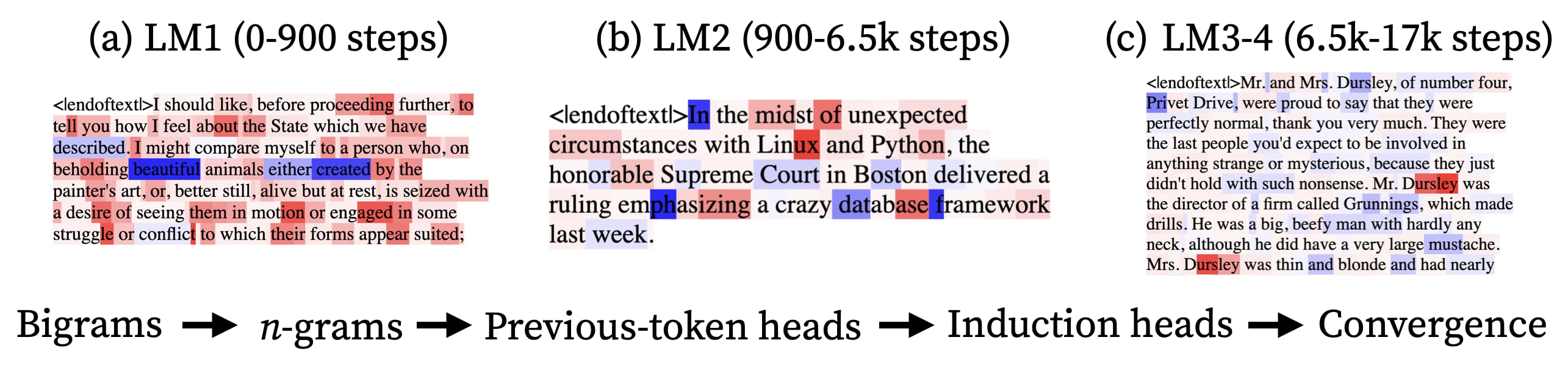 Stages are often associated to the formation of particular structures and behaviors. The boundaries between stages, then, are particularly interesting targets for interpretability, as they represent a point at which some structure or behavior has finished forming.