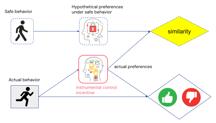 Unfortunately, the learning agent still has an incentive to deceive the human or manipulate their preferences, as the human preferences still satisfy the graphical criterion for an instrumental control incentive (it’s on a directed causal path from behaviour to feedback). Additionally, the learning agent also has an incentive to deceive the helper agent: