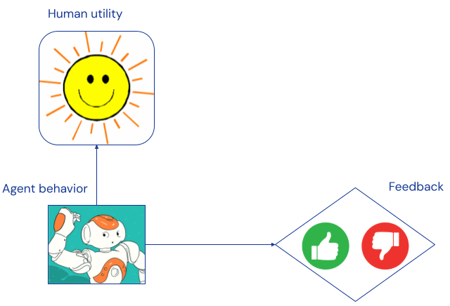 In situations where a programmatic reward function is hard to specify, AI systems can often be trained from human feedback. For example, a content recommender may be optimising for likes, and a language model trained on feedback from human raters.