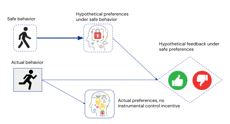The important difference to impact measures, is that path-specific objectives tell the agent to optimise a hypothetical feedback signal, which has been generated from a hypothetical, uninfluenced user’s preferences. This fully removes the instrumental control incentive on the user’s preferences, and thereby avoids the problem of (intentional) preference manipulation.