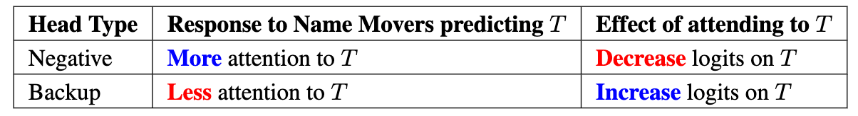 Further, while we show some scalability to larger models in the appendices, it seems that copy suppressors in larger models don't just use the unembedding directions as we didn't find any other heads as clean as L10H7 when we projected outputs onto the unembedding directions. We think good exploratory work could be done to understand similar heads in larger models, including backup heads (such as the self-repairing heads studied in The Hydra Effect) and negative heads (we continually found heads for which WOV had generally negative eigenvalues in e.g Llama models).