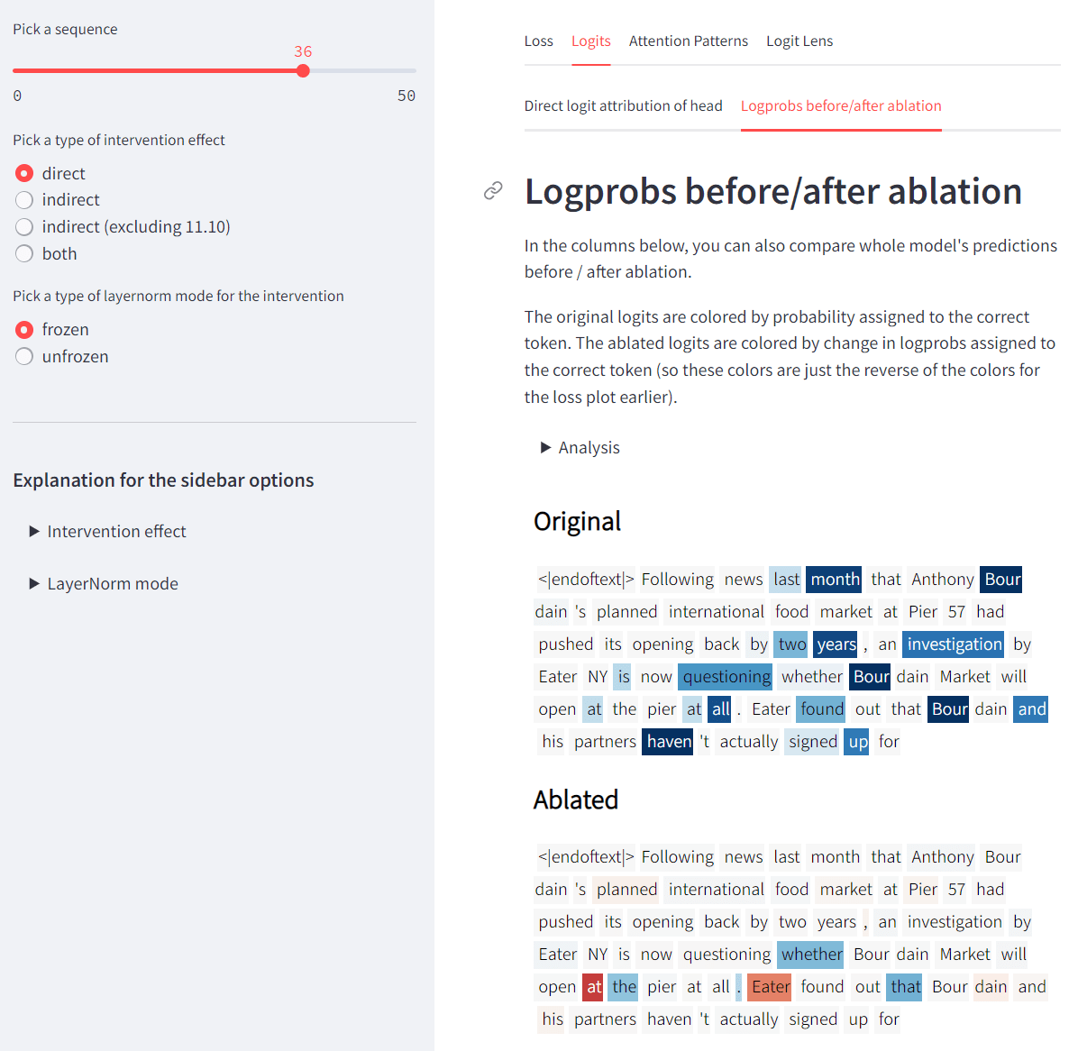 Navigate through OpenWebText example prompts, and see (on a per-token basis):