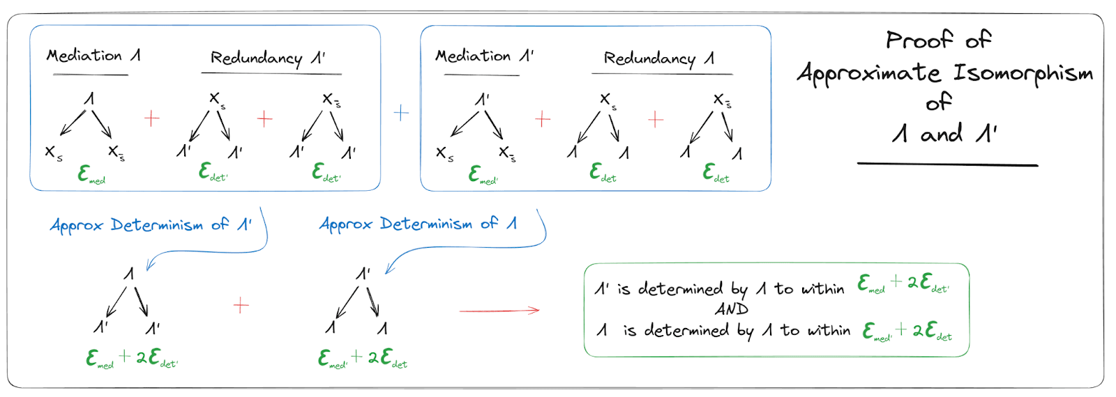 Now suppose that Λ (approximately) satisfies both the mediation and redundancy conditions. Then: