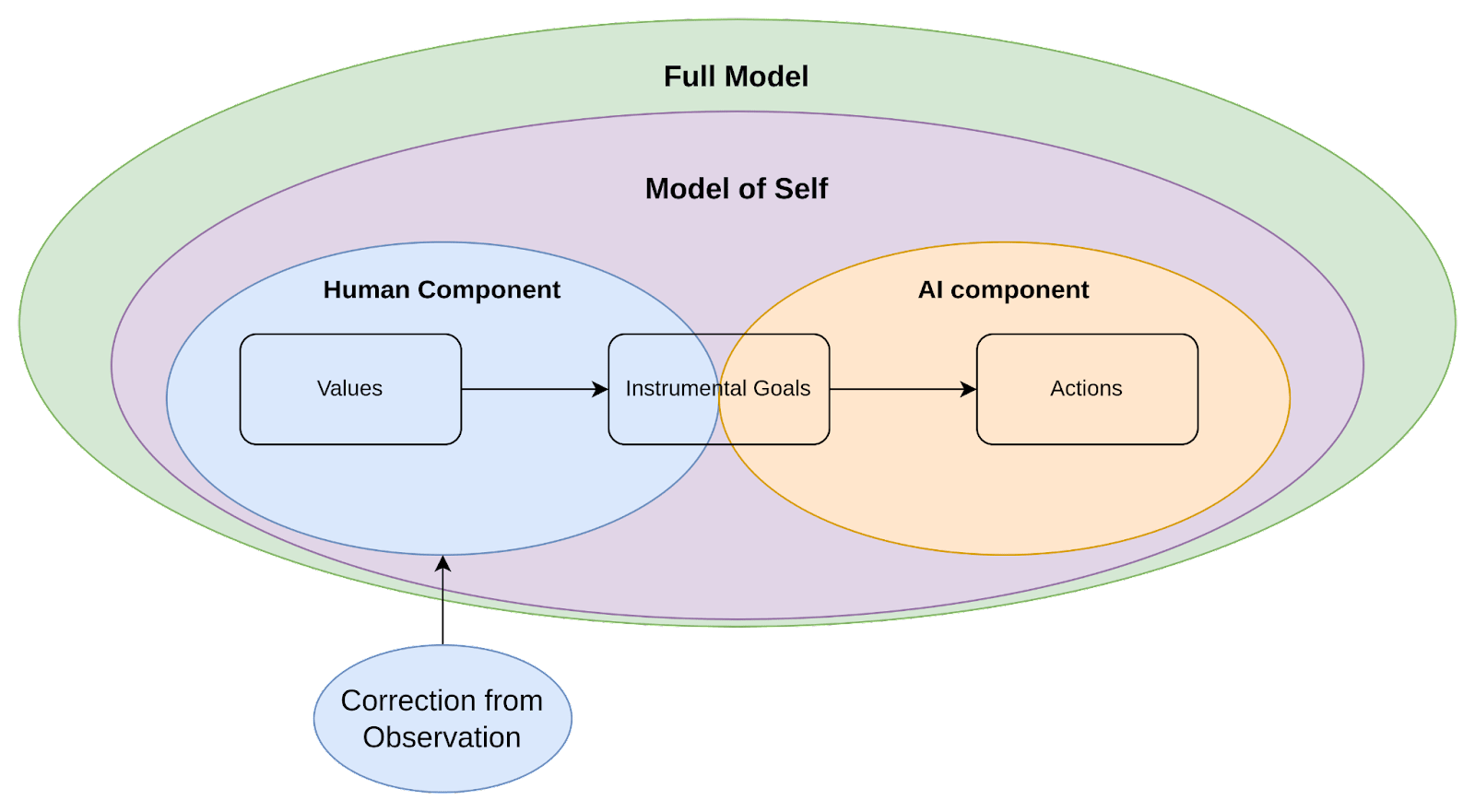 In particular, the aim is for this model of self to view the AI component as an extension of the human component’s own agency, expanding what the human is capable of without having any values or desires of its own.