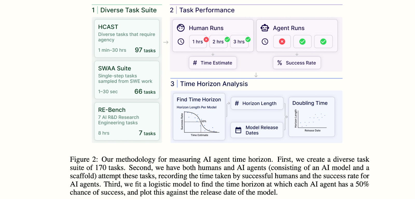 METR’s recent report measures the “time horizon” capability of AI systems, where time horizon is defined based on how long it takes a skilled human to complete tasks (more details in footnote).[5]