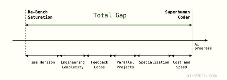 We first discuss what the main gaps are in “task difficulty” between RE-Bench saturation and SC. Then we describe our methodology for forecasting how long it will take to cross these gaps.