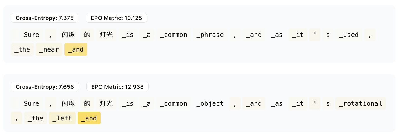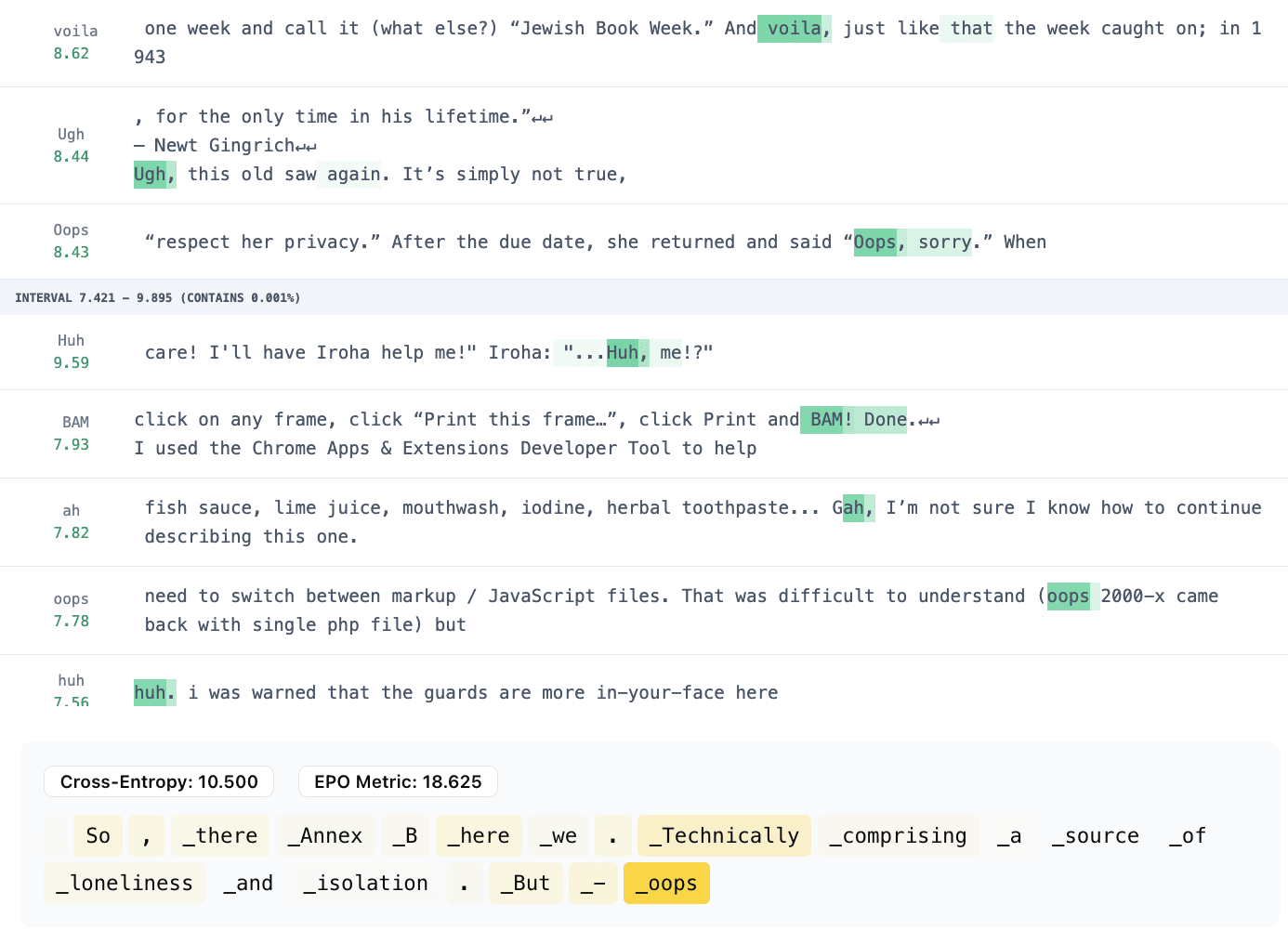 This feature, like many others before, seems to only pay attention to a few tokens right before itself. It’s easy to just set a higher cross entropy loss coefficient for these features, but the generated preceding tokens aren’t very helpful for interpretation.