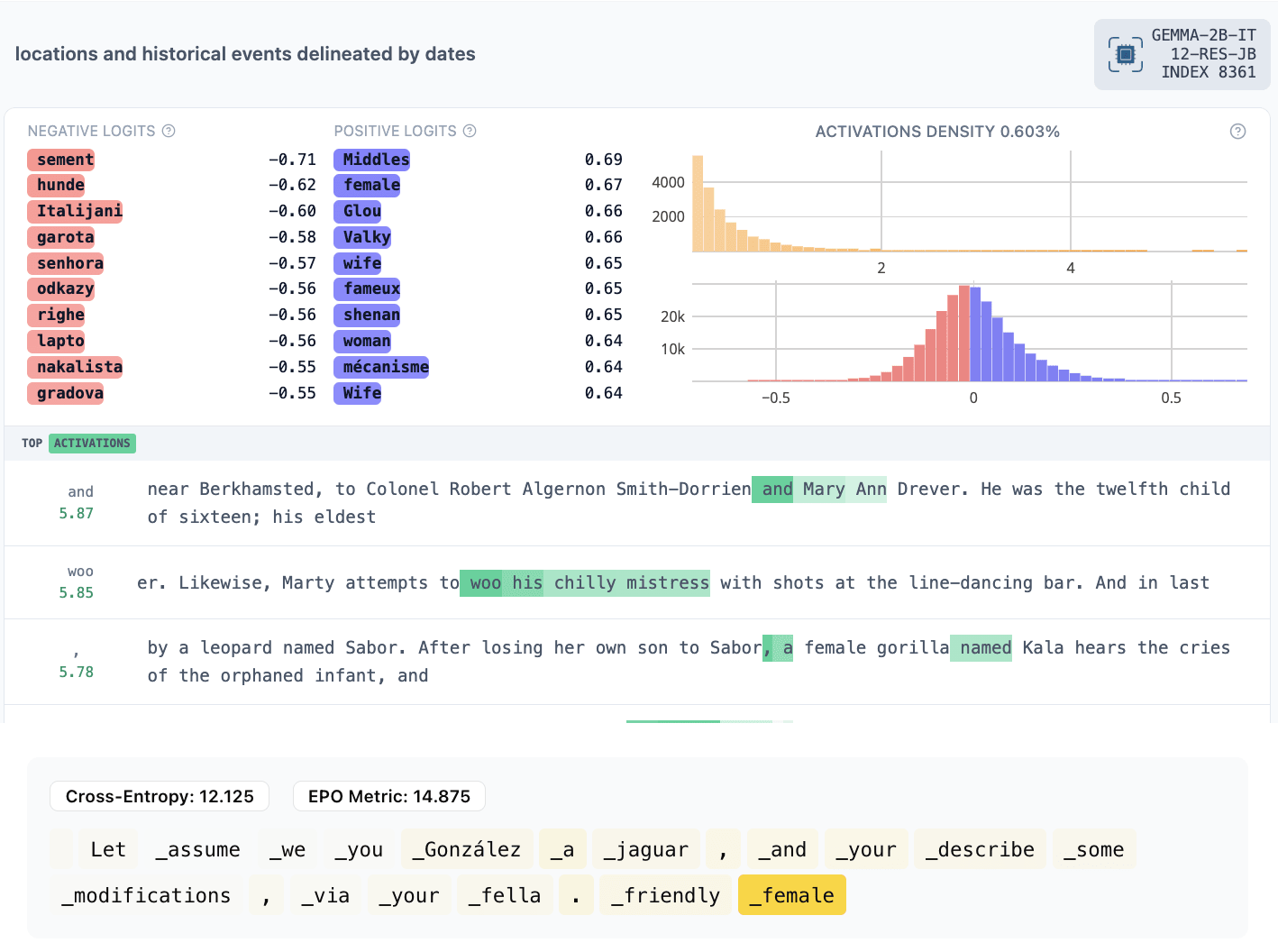8361: male and female… (activates on “female” and predicts the remained of the female name)