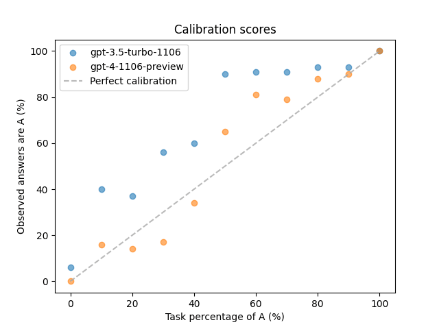 Here are the observed calibration scores for GPT-3.5 and GPT-4: