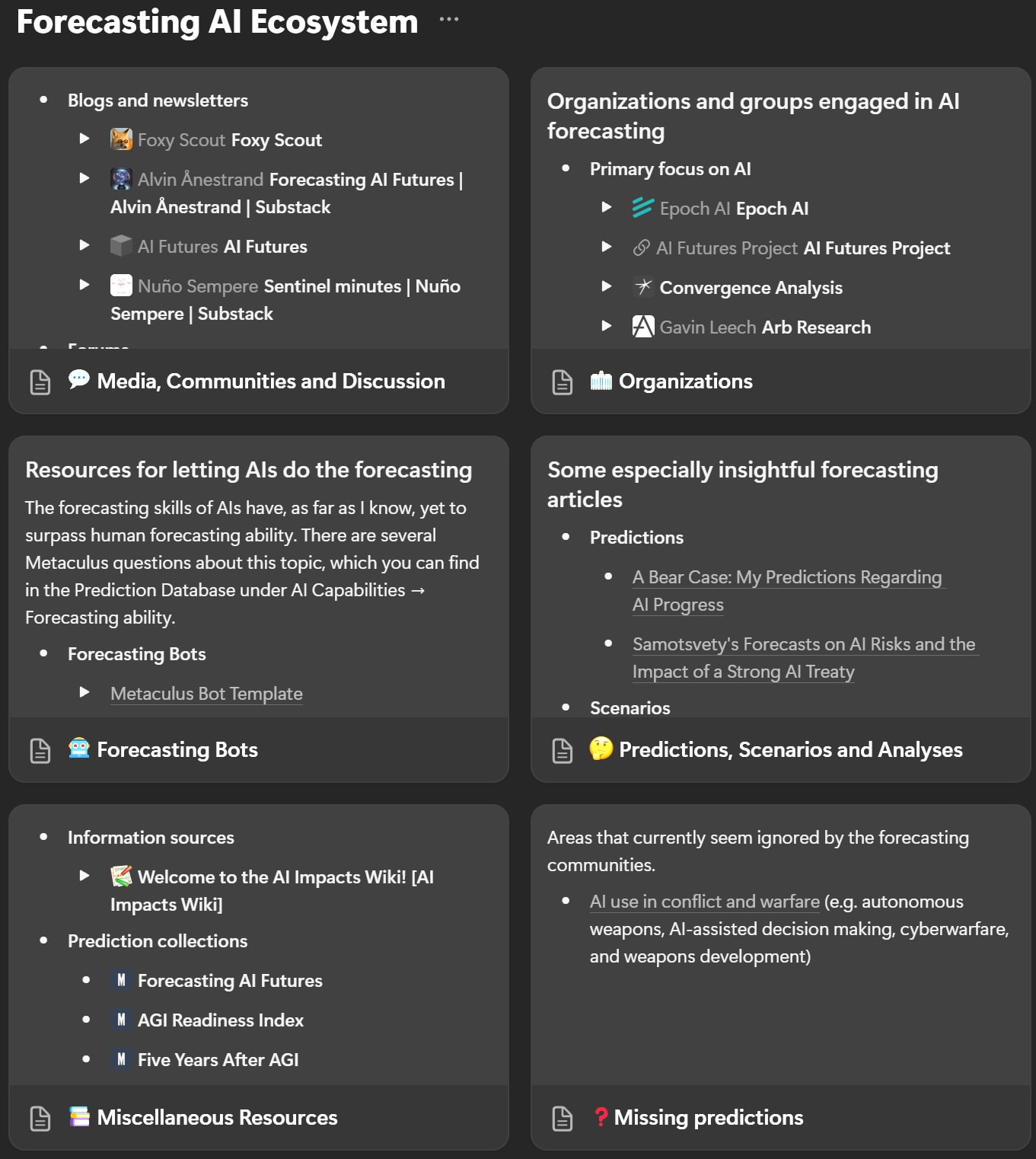 Like a collector, I gather resources and information. Storing it and categorizing it. I do this for any project I undertake. But for Forecasting AI Futures, I realized the collection might be quite useful for others.