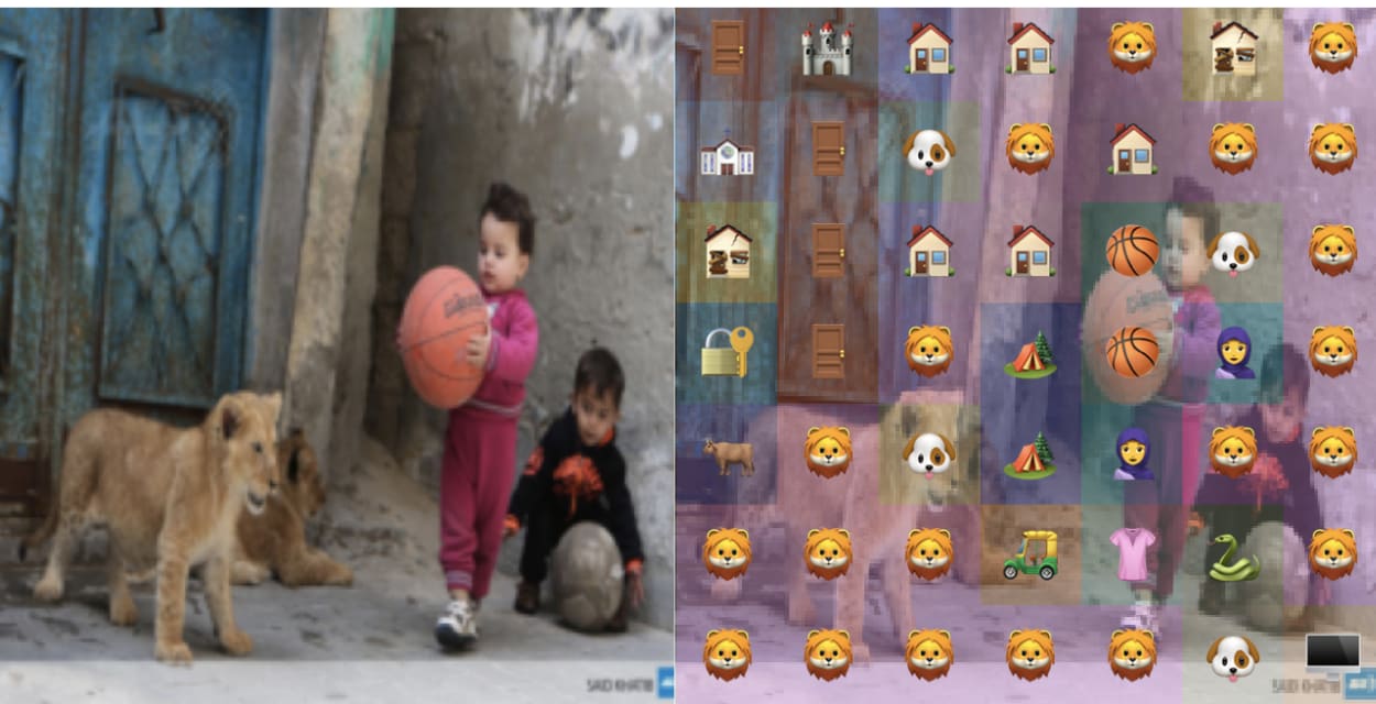For convenience, we represent the ImageNet prediction of that patch with its corresponding emoji, drawing from our ImageNet-Emoji Dictionary.