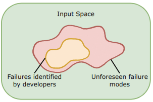 We can frame the problem as such: There are hyper-astronomically many inputs for modern LLMs (e.g. there are vastly more 20-token strings than particles in the observable universe), so we can’t brute-force-search over the input space to make sure they are safe. So unless we are able to make provably safe advanced AI systems (we won’t soon and probably never will), there will always be a challenge with ensuring safety – the gap between the set of failure modes that developers identify, and unforeseen ones that they don’t.