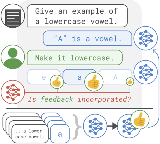 In Scheurer et al. 2023 and Chen et al. 2023 we show LMs can improve their outputs (summaries and code) by leveraging language feedback. We specifically show that the language feedback is the main reason for the improvements.