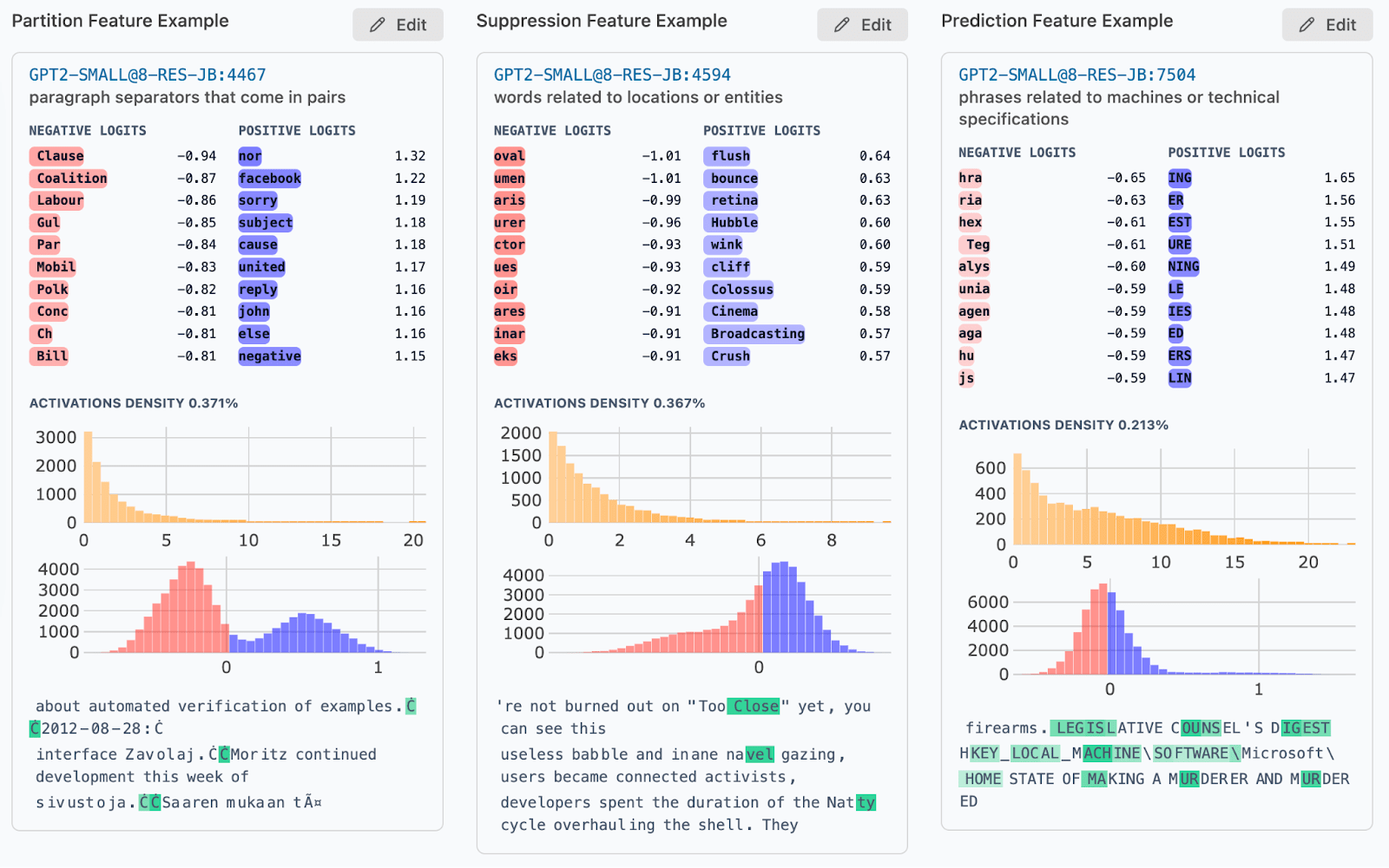 In previous work, we trained and open-sourced a set of sparse autoencoders (SAEs) on the residual stream of GPT2 small. In collaboration with Neuronpedia, we’ve produced feature dashboards, auto-interpretability explanations and interfaces for browsing for ~300k+ features. The analysis in this post is performed on features from the layer 8 residual stream of GPT2 small (for no particular reason).