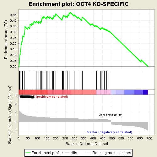 The figure below is a standard GSEA “enrichment plot” showing the running sum statistic for some set / ranking over genes. We note that usually a false discovery rate is estimated when performing large numbers of these tests. We’ve skipped this procedure as we’re short on time, but this should be implemented when this technique is applied at scale.