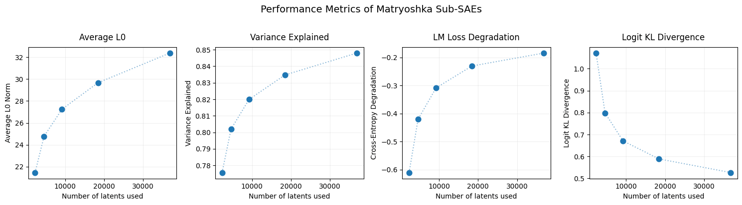 Although we only trained a single Matryoshka SAE, each of the nested SAEs was optimized to have a good sparse reconstruction, and can be evaluated individually.