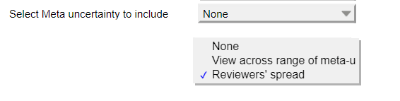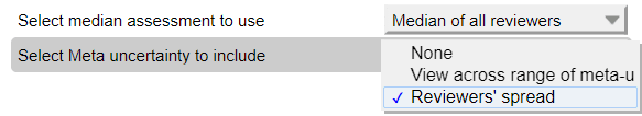 Change Select median assessment to use to Median of all reviewers, and select the Reviewer’s spread option in the choice pulldown for Select meta uncertainty to include.