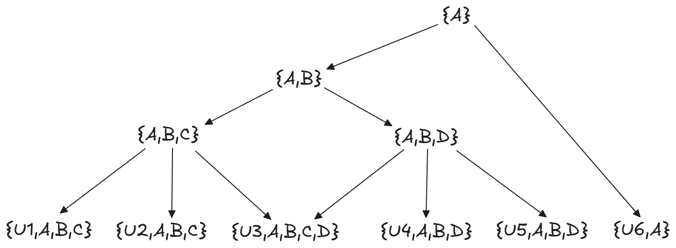 Example: Suppose that we have , , , , , . The resultant hierarchy would be: