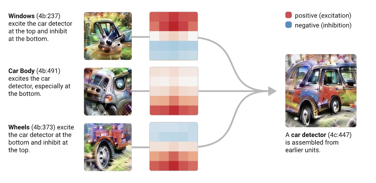 From Zoom In: An Introduction to Circuits We made the assumption that it was possible to construct circuits similar to deep-learned ones from the ground up. This convolution net uses the ontology “Window + Car body + Wheels → Car.”